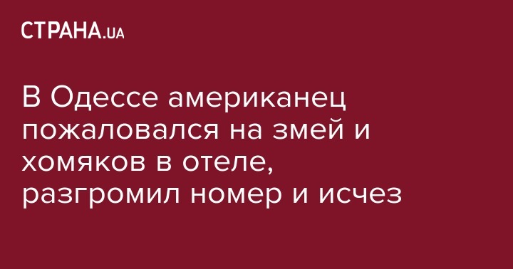 Вечером на линию "102" позвонил американец Джон В., рассказавший об исчезновении своего 50-летнего сына Майкла. Полицейские проверили эту информацию, и выяснили, что в среду американец поселился в небольшом отеле в центре Одессы. "Он сразу же начал жаловаться на наличие в номере… змей и хомяков. Мужчину перевели в другую комнату, которую он разгромил в ночь на четверг и, собрав все личные вещи, покинул гостиницу", - пишет издание, добавив, что больше мужчину никто не видел.