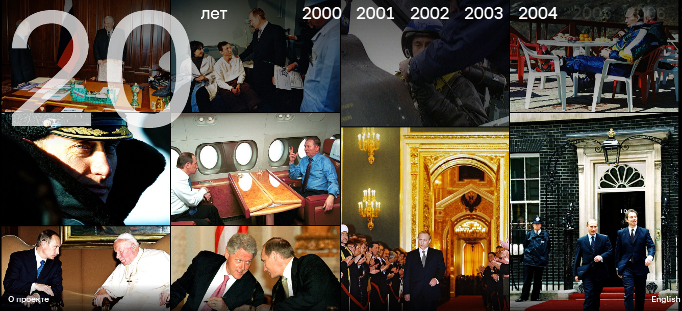 В онлайн-альбом вошли избранные моменты последних 20 лет, начиная с 31 декабря 1999 года, когда он был назначен исполняющим обязанности главы государства, а Борис Ельцин объявил об отставке с поста президента России.