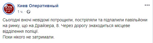 В Киеве неизвестные расстреляли и подожгли рынок под носом у полиции. Фото