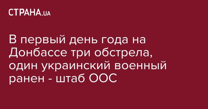 "1 января вооруженные формирования Российской Федерации 3 раза нарушили режим прекращения огня. Противник обстрелял позиции наших подразделений из гранатометов различных систем, крупнокалиберных пулеметов и стрелкового оружия… в результате вражеских обстрелов один военнослужащий Объединенных сил получил ранения", – говорится в сообщении, на официальной странице штаба ООС в Facebook в четверг утром.