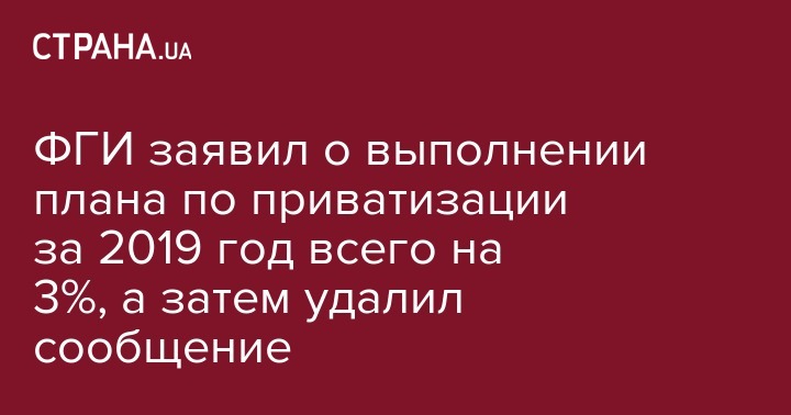 В 2019 году сумма поступлений в госбюджет от приватизации составила 536,5 миллионов гривен - таким образом, Украина выполнила план приватизации на 3%. Об этом сообщила пресс-служба Фонда в Facebook, но затем удалила сообщение.