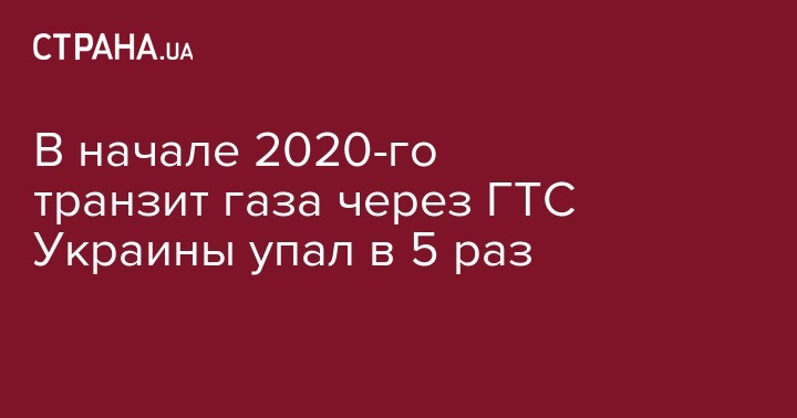 В начале 2020-го транзит газа через ГТС Украины упал в 5 раз