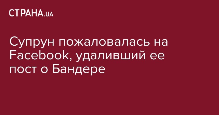 Служба поддержки соцсети Facebook удалила сообщение экс-министра здравоохранения Уляны Супрун о Степане Бандере, в котором она употребила несколько его цитат. Об этом Супрун написала в Facebook.
