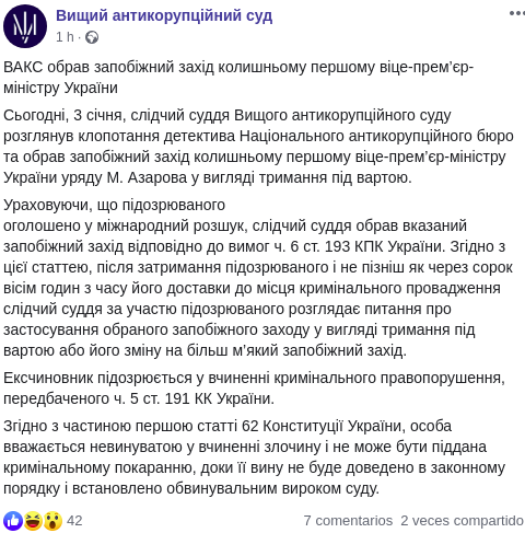 Скриншот: Facebook/Вищий антикорупційний суд