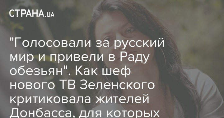 Мало того, что это все профанация, ведь канал задуман, как тупо пиар площадка Зеленского, и вещать он на самом деле будет на всю Украину, так еще и за информационную политику будет отвечать некая Елена, которая считает нормой называть людей ватой, обезьянами (ведь она говорит, что надо называть вещи своими именами). Да, бл..., это то, что именно нужно Донбассу! Дайте два!