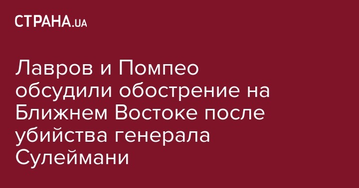 Госдеп США сообщил, что Помпео обсудил с Лавровым решение Трампа "предпринять решительные оборонительные действия для защиты американского персонала за рубежом, убив Касема Сулеймани в ответ на неминуемую угрозу жизни американцев".