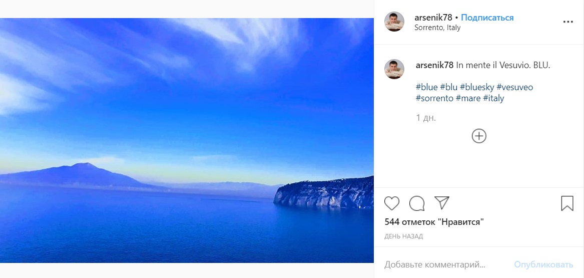 Геолокация опубликованных министром фотографий указывает на его местонахождение в городе Сорренто в Италии.