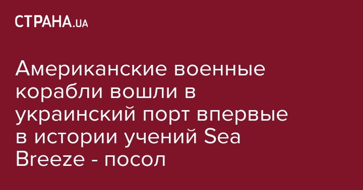 Чрезвычайный и полномочный посол США в Украине Джеффри Пайетт заявил, что два американских корабля вошли в порт Одессы впервые в истории учений Sea Breeze. Об этом сообщает пресс-служба Минобороны.