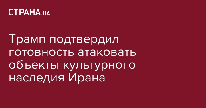 Президент Соедненных Штатов Америки Дональд Трамп подтвердил, что США атакует объекты персидского культурного наследия в качестве ответа на возможные атаки Ирана против американцев. Об этом сообщает CNN.