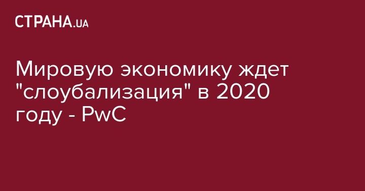В 2020 году мировую экономику может ждать замедление темпа роста - "слоубализация". Об этом говорится в отчете консалтингового агентства PwC (PricewaterhouseCoopers).