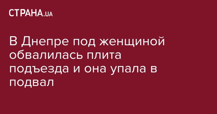 На улице Романа Шухевича в Днепре у подъезда малоэтажного дома обвалилась плита перекрытия, в результате чего одна из местных жительниц провалилась в подвал, пролетев около метра. Об этом сообщает Информатор