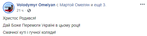 Вместе с супругой Светланой Бевзой в честь Рождества Омелян поставил настоящий вертеп с колядками и бек-вокалом. Об этом был еще один его пост, в котором он подколол Владимира Зеленского за его поездку в Оман.
