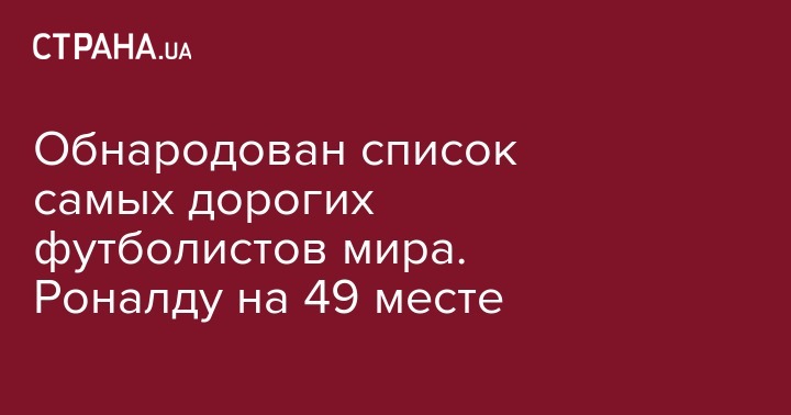 Обнародован список самых дорогих футболистов мира. Роналду на 49 месте