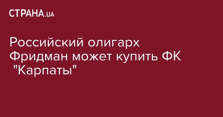 По данным источников, сейчас Фридман рассматривает вариант приобретения "Карпат". Уточняется, что российский миллиардер собирается выкупить доли в этом футбольном клубе у Петра Дыминского и Игоря Коломойского.