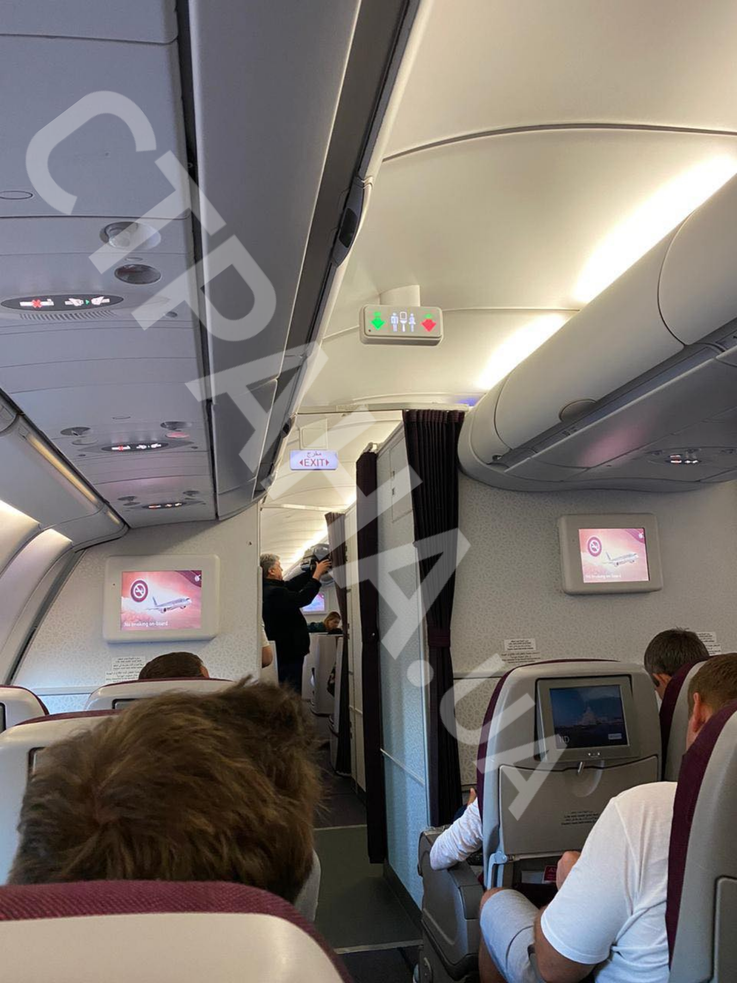 Порошенко вернулся сегодня из Катара. На снимке видно, как он забирает свой багаж с полки в бизнес-классе перед тем, как выйти из самолета в Международном аэропорту Борисполь.