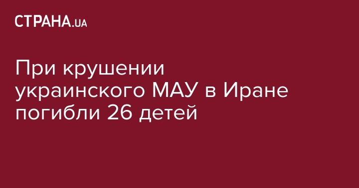 При крушении самолета украинской авиакомпании МАУ в Иране погибли 26 детей. Об этом говорится в материале "Страны" под названием "В Иране разбился украинский "Боинг". Погибли 176 человек. Это крупнейшая авиакатастрофа в истории Украины".