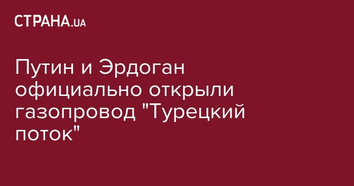 Президент России Владимир Путин и его турецкий коллега Реджеп Эрдоган официально открыли газопровод "Турецкий поток" общей мощностью 31,5 миллиарда кубометров в год, проложенный по дну Черного моря.