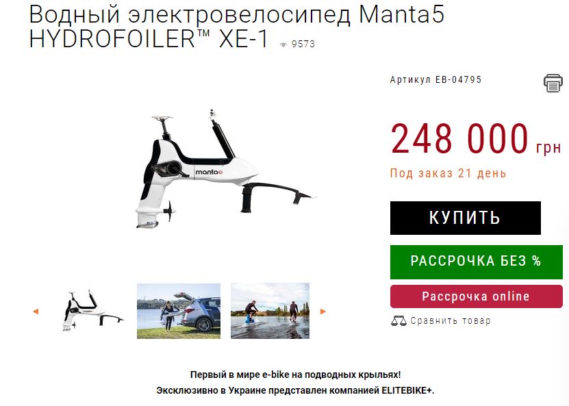 Новозеландский стартап Manta5 представил на выставке CES в Лас-Вегасе водяной электровелосипед Hydrofoiler XE-1.