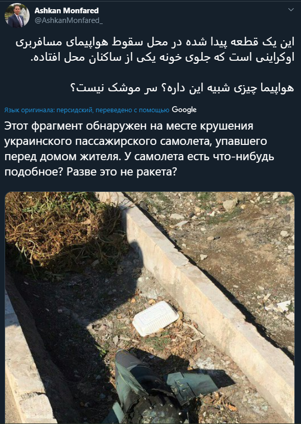 То есть иранское следствие ни о каких ракетах или подозрительных вспышках вокруг самолета не заявляет.