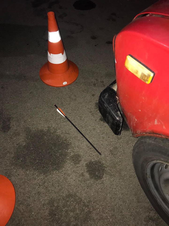 В городе Борисполь выпущенная из арбалета стрела насквозь пробила ладонь сотруднице управления образования городского совета. Об этом на своей странице в соцсети сообщил секретарь Бориспольского горсовета Ярослав Годунок. По его словам, выстрел вполне мог оказаться смертельным, если бы попал не в руку. Он был такой силы, что стрела пробила ладонь  насквозь и врезалась в автомобиль.