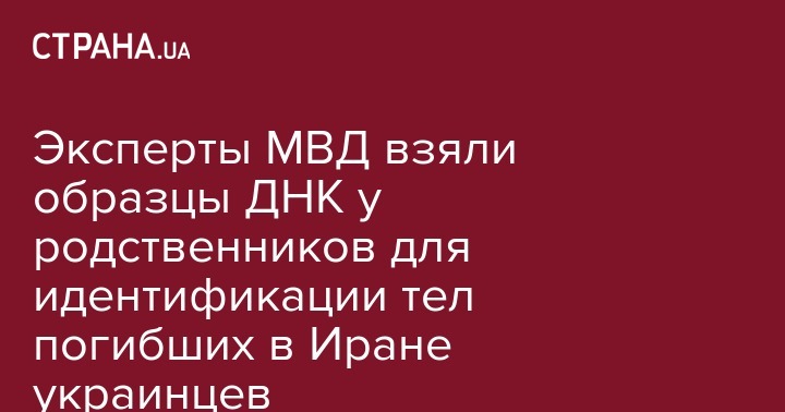В четверг, 9 января, эксперты Министерства внутренних дел Украины собрали образцы ДНК родственников украинцев, погибших в авиакатастрофе под Тегераном, для идентификации тел. Об этом сообщает пресс-служба Национальной полиции Украины.