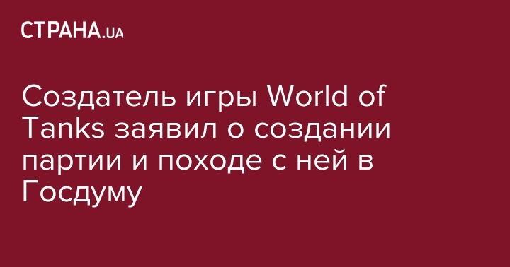 Создатель игры World of Tanks заявил о создании партии и походе с ней в Госдуму