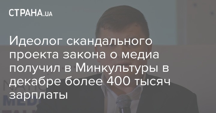 Первый замминистра культуры, молодежи и спорта, а также один из идеологов скандального законопроекта о медиа Анатолий Максимчук за декабрь получил получил более 400 тысяч гривен в качестве зарплаты.