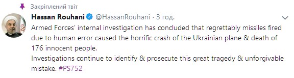 Так, Роухани назвал удар по самолету "непростительной ошибкой", которая привела к гибели людей.