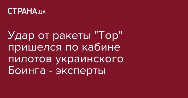 Эксперты украинской государственной комиссии в Тегеране выяснили, что удар от ракеты "Тор" пришелся по кабине пилотов рухнувшего "Боинга", из-за чего вышло из строя оборудование, которое подает сигналы о полете.