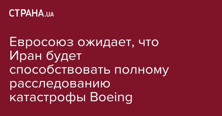 "Европейский Союз принял во внимание заявление иранских властей о признании ответственности за катастрофу самолета Международных авиалиний Украины PS 752 8 января. Мы скорбим по поводу этой трагедии, повлекшей гибель такого большого количества людей из разных стран, и от всего сердца выражаем глубокие соболезнования их семьям и близким", - говорится в заявлении.