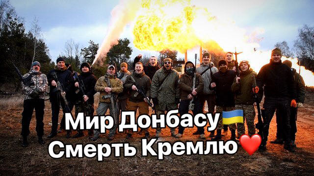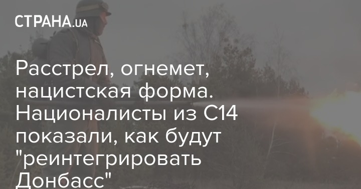 На первом – группа молодых людей, выстроившись в ряд, стреляет из автоматов и пистолетов – как будто кого-то расстреливает. На переднем фоне возникает Карась и с улыбкой говорит: "Готовимся к реинтеграции Донбасса".