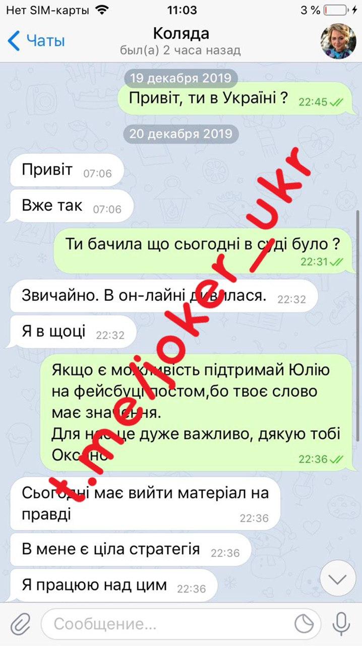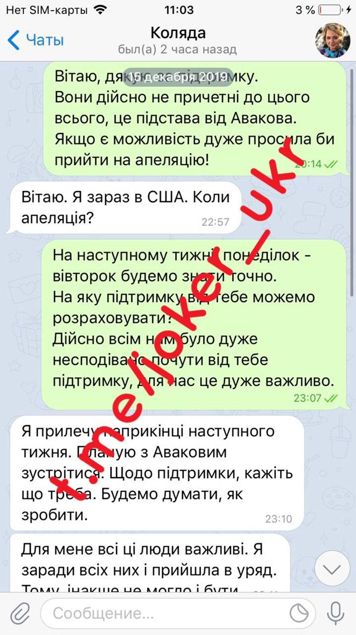 Из переписки становится ясно, что Коляда вопреки воле президента Владимира Зеленского и позиции министра внутренних дел Арсена Авакова не согласилась с обвинениями в деле об убийстве журналиста Павла Шеремета.