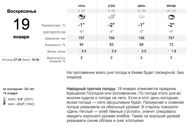 Погода на Крещение, 19 января, в Украине