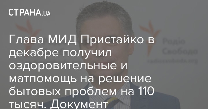Глава МИД Пристайко в декабре получил оздоровительные и матпомощь на решение бытовых проблем на 110 тысяч. Документ
