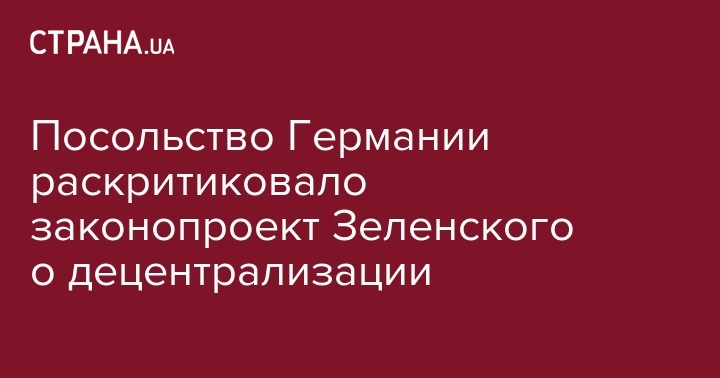 Посольство Германии раскритиковало законопроект Зеленского о децентрализации