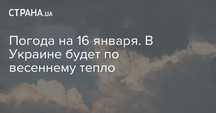 Погода в Украине в четверг, 16 января, будет совершенно не январской, с плюсовой температурой и солнцем. Поэтому днем будет тепло, а ночью ожидаются слабые заморозки. Об этом говорят данные Укргидрометцентра