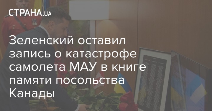 Зеленский оставил запись в книге памяти, которую в посольстве положили у мемориальной таблички с именами жертв авиакатастрофы.