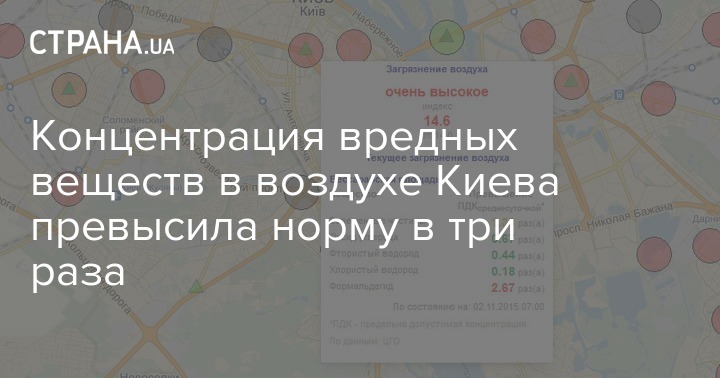 Концентрация вредных веществ в киевском воздухе превышает норму в три раза. Об этом рассказал глава Госпродуктпотребслужбы столицы Олег Рубан, пишет издание "ГолосUA".