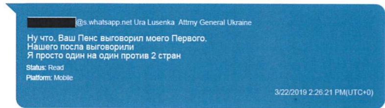 На следующий день - 22 марта - Луценко сообщает Парнасу, что вице-президент Майкл Пенс сделал выговор Петру Порошенко, а Госдеп - послу Украины в США.