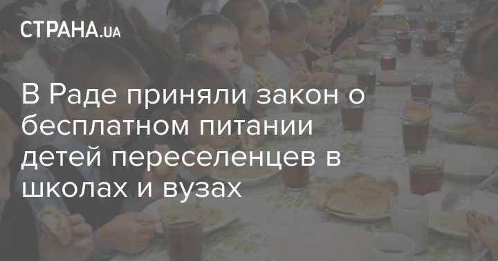 Парламент проголосовал принятие закон "О внесении изменений в некоторые законы Украины относительно обеспечения бесплатным питанием детей внутренне перемещенных лиц", которым предусматривается предоставление бесплатного питания детям внутренне перемещенных лиц.