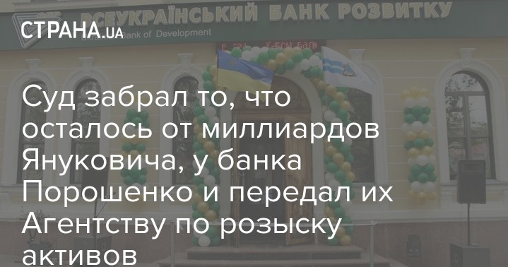 16 января Печерский суд передал арестованные средства банка ВБР, который называют банком семьи Янковича, в распоряжение Агентства по розыску активов. Ранее их вывели через "Международный инвестиционный банк" - банк Петра Порошенко. Это озачает, что теперь после решения суда, проценты за пользование этими средствами будет получать государство, а не банк Порошенко.