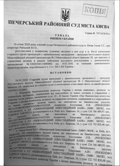 И к лету 2019 структурам, близким к семье Януковича, удалось вывести через этот банк 2 млрд грн наличными. На счетах банка Порошенко у "Януковичей" к настоящему осталось около 250 млн грн. И вчера Печекрский суд передал эти средства в управление Агентства по розыску активов.