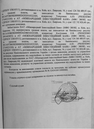 Однако, уже в 2016 году суд снял арест со счетов и дал возможность вывести их через банк Порошенко "Международный инвестиционный банк".