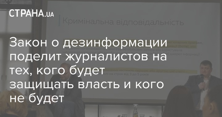 Минкульт сегодня презентовал скандальный проект закона о введении уголовной ответственности для журналистов за дезинформацию. Согласно документу, помимо прочего, будет создана организация журналистского самоуправления, которая будет выдавать удостоверения профессионального журналиста. Профи из этой организации получат усиленную защиту от государства. Остальные представители СМИ такой защиты иметь не будут.
