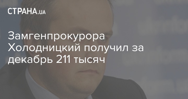 Зарплата заместителя генерального прокурора Назара Холодницкого за декабрь 2019 года составила 211 717 гривен. Холодницкий занимает должность  специализированного антикоррупционного прокурора. Таким образом, его зарплата примерно в четыре раза больше оклада.