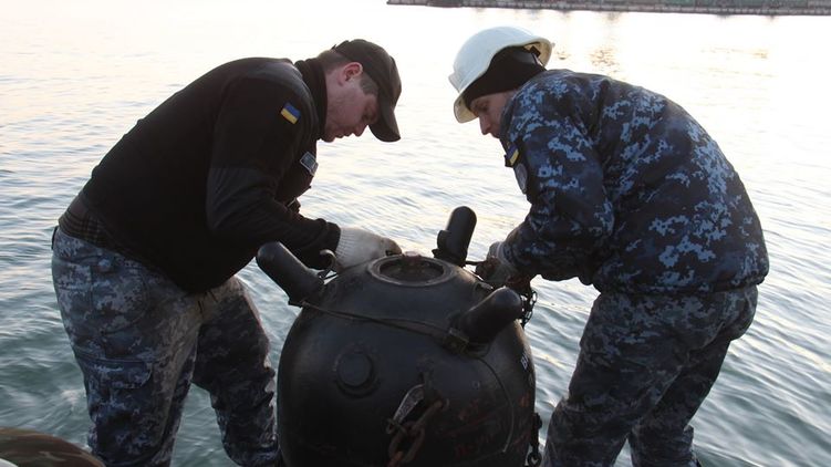 Сначала у военных было теоретическое занятие и принятие зачетов. А после обеда экипаж малого бронированного артиллерийского катера "Лубны" отработал загрузку морских донных мин на корабль, закрепления их палубе и приведение мин в боеготовность.