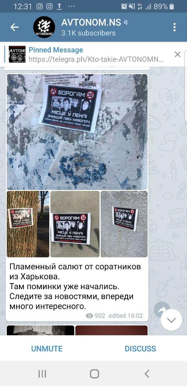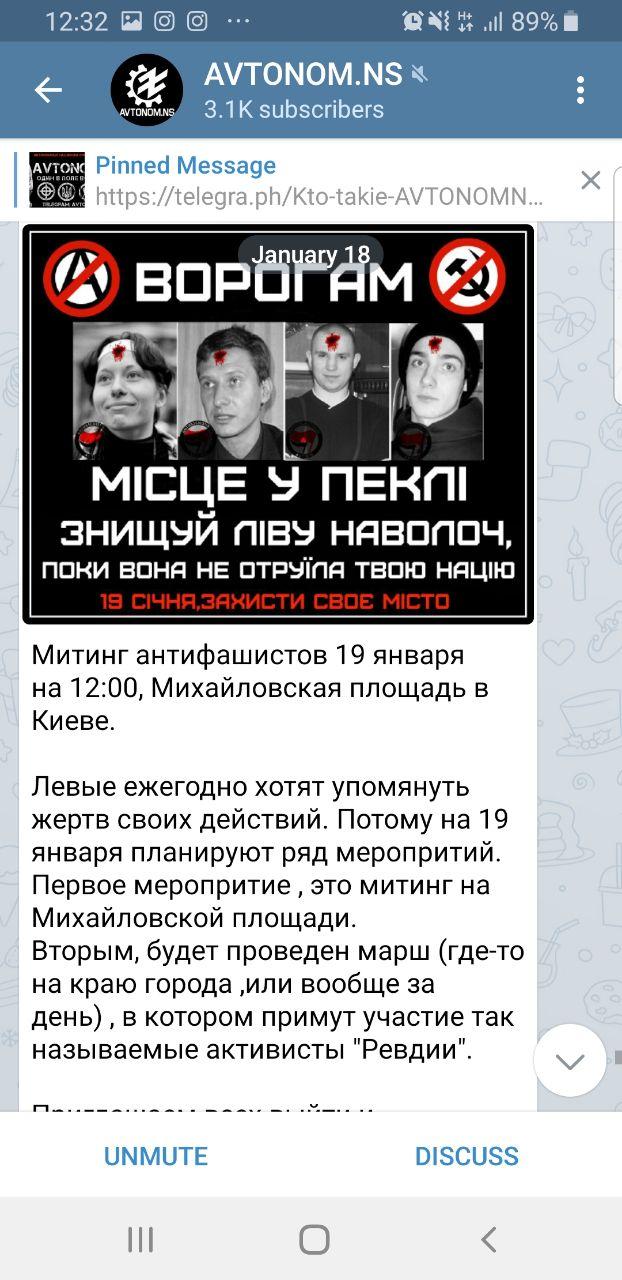 Накануне в телеграмм-канале националистов были опубликованы сообщения с призывом ликвидировать участников антифашистской акции. Утром на майдане независимости появился флаг с надписью "Убить антифашиста".
