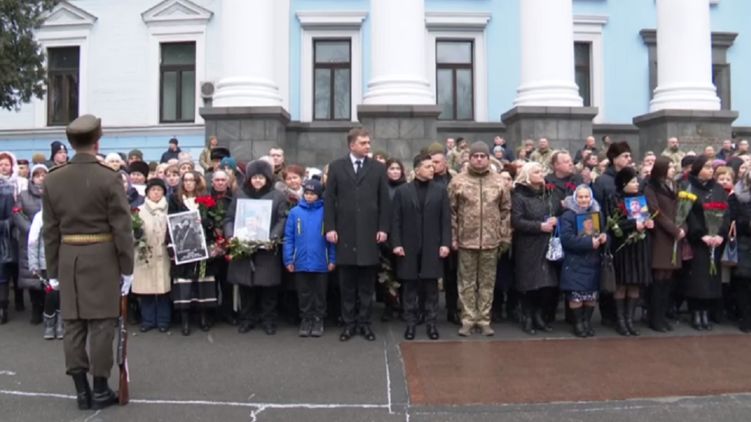 Пресс-служба Офиса президента сообщает, что память погибших на Донбассе пришли почтить также родные бойцов и премьер со спикером.