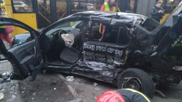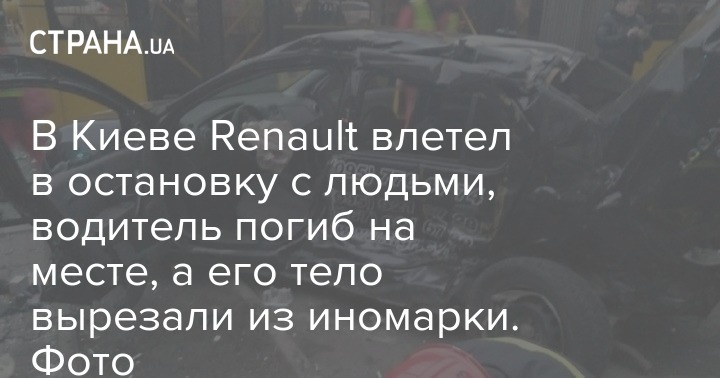 В Киеве Renault влетел в остановку с людьми, водитель погиб на месте, а его тело вырезали из иномарки. Фото