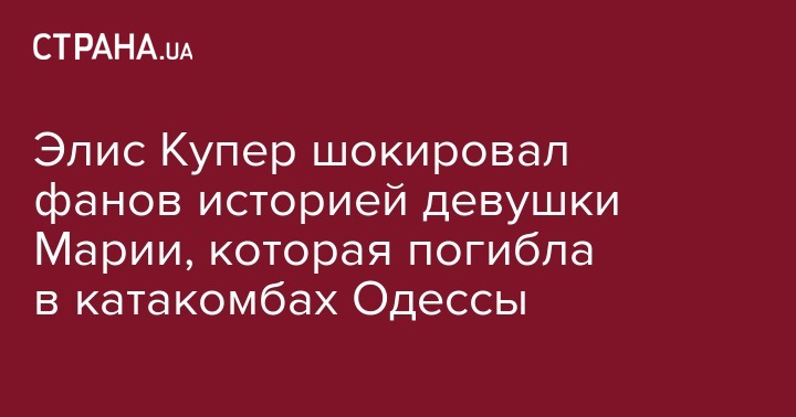 Американский рок-звезда Элис Купер на своей странице в социальной сети Facebook рассказал фанам шокирующую историю гибели девушки Марии в одесских катакомбах.